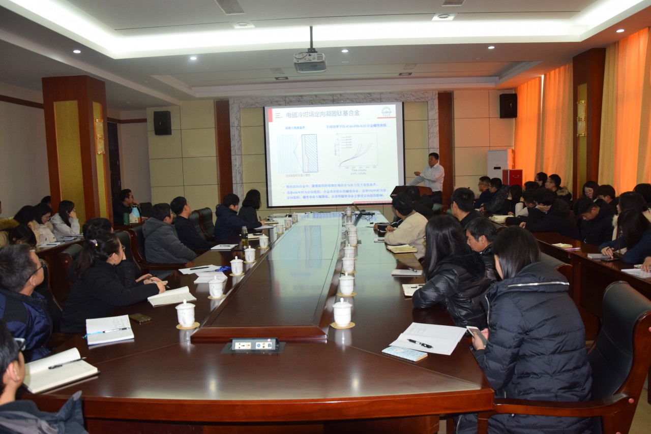1月11号下午,由研究生院(部)主办,beat365亚洲版官方网站承办的2019年第2期“名家讲坛”在2号楼434学院会议室举行。哈尔滨工业大学教授,国家杰出青年基金获得者,科技部中青年科技创新领军人才陈瑞润教授应邀作了题为“电磁冷坩埚及其定向凝固”的学术报告。学院部分教师和研究生参加了报告会。报告会由beat365负责人崔洪芝主持。