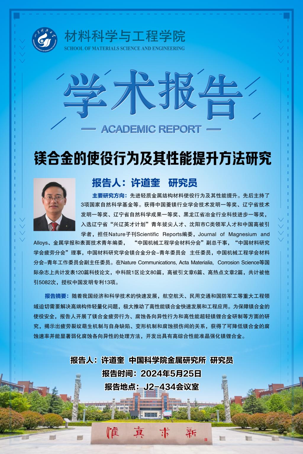 【学术报告】镁合金的使役行为及其性能提升方法研究
