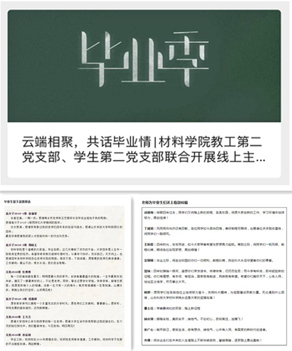 四年时光,匆匆而逝,在毕业生离校之际,beat365教工第二党支部联合学生第二党支部开展了线上主题党日活动。师生们云端相聚,共话浓浓的毕业情。
