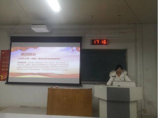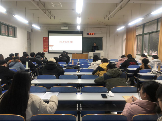 1月4日,校纪委综合处处长白斌讲授“党的纪律”,介绍了党的纪律的发展历程,从为什么、怎样做两个方面详细讲述了党组织的六个纪律、四个特点。他建议同学们认真学习加强思想建设,增强纪律观念,认真遵守严格执行,真正起到模范带头作用。