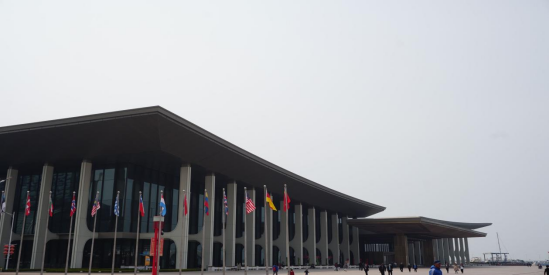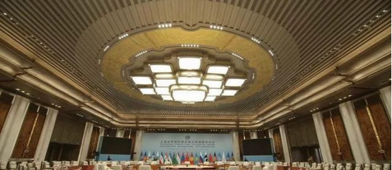 这是习近平主席作为中国国家元首首次主持上合组织峰会。齐鲁大地、孔孟之乡,人文气息扑面而来。“儒家倡导‘大道之行,天下为公’,主张‘协和万邦,和衷共济,四海一家’。这种‘和合’理念同‘上海精神’有很多相通之处。进入新时代的中国为上合组织注入新动力。走近场馆,寓意“腾飞逐梦,杨帆领航”的建筑尽显大国风度。在观赏过程中,团支部书记张居强向大家介绍了此次会议的核心精神,这是一次新的“大家庭”聚会——作为上合组织接收印度、巴基斯坦为成员国,实现组织扩员后首次举行的元首理事会会议,青岛峰会承载着承前启后、继往开来的特殊意义。提倡创新、协调、绿色、开放、共享的发展观;践行共同、综合、合作、可持续的安全观;秉持开放、融通、互利、共赢的合作观;树立平等、互鉴、对话、包容的文明观;坚持共商共建共享的全球治理观。巍峨泰山,旭日喷薄而出,霞光照耀大河山川。国际会议中心迎宾厅正面,一幅题为《国泰民安》的国画气势磅礴。身在其中,仿佛感受到了当时会议的肃穆氛围及大国的恢宏气势。参观结束后,学生代表们相聚于会馆门口合影留念。