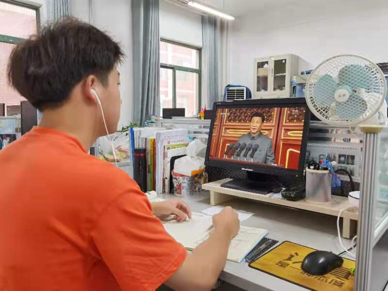 7月1日上午8:00,beat365组织全体师生观看庆祝中国共产党成立100周年大会。学院领导班子成员、各系(中心)主任、全体师生党员在J2-434会议室收看了大会直播盛况。beat365小草学堂党支部和各班级同学分别在J2-222和J14-203、309、319、321教室进行了集中观看。