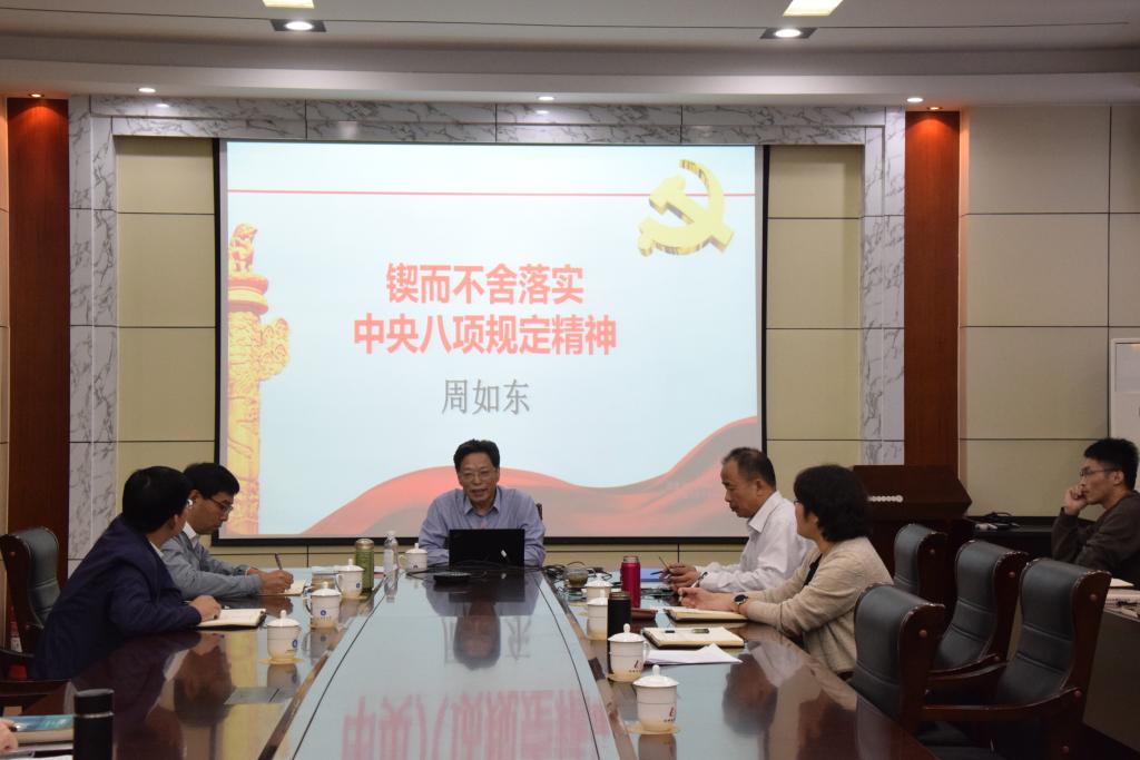 周如东以“ 锲而不舍落实中央八项规定精神”为题,结合丰富的典型案例,从中央八项规定精神的主要内涵、产生背景、具体内容、执行成效等方面对全体教职工做了详细阐述。周如东表示中央八项规定开启了全面从严治党的大格局,全体党员要从自身做起,加强作风建设,锲而不舍贯彻落实中央八项规定精神。