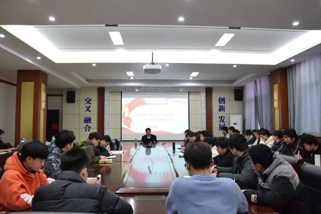 为深入学习贯彻党的十九届六中全会精神内涵,深刻把握党百年奋斗的重大成就、深刻理解党的第三个历史决议的重大意义,12月29日beat365党委书记申兆亮在J2-434会议室分别面向金属材料工程系、新能源材料与器件系、实验中心教师和金属材料工程2019级4班联系班级作了题为《深刻理解党的第三个历史决议》的专题宣讲。
