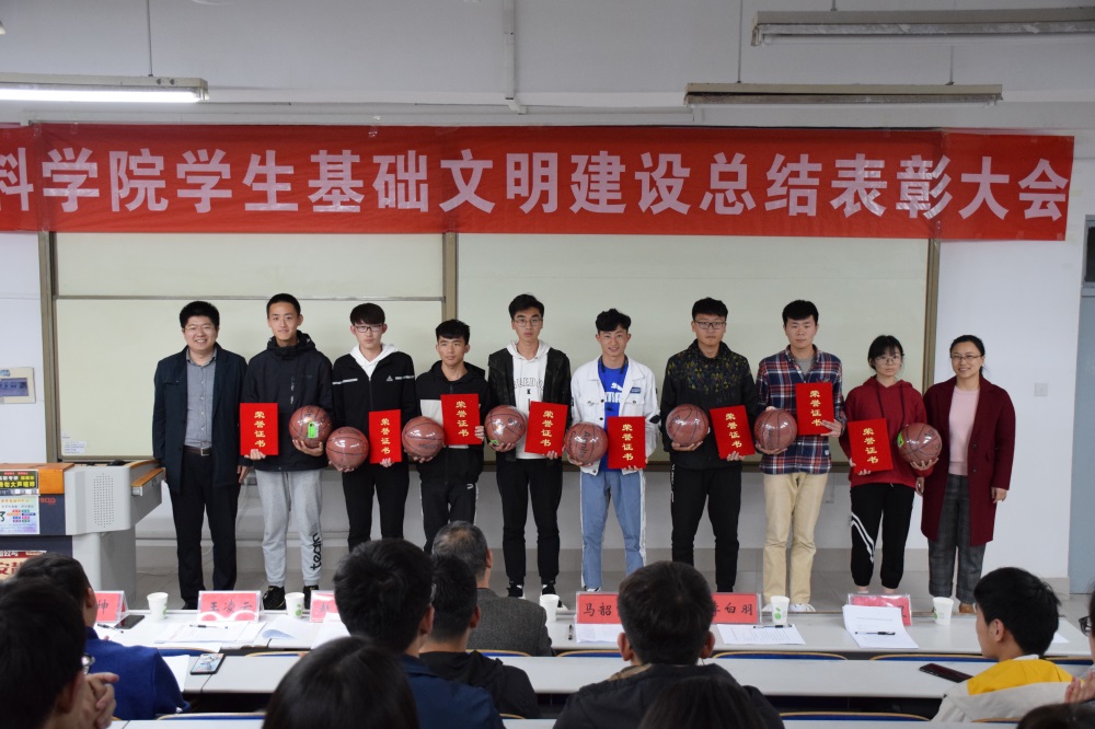 428日晚,beat365在S1-103教室举行2018年度基础文明表彰大会。院党委副书记、副院长韩明臣,学生工作部公寓管理中心主任赵洋,团委书记马韶霞,全体专兼职辅导员,校自律会、楼管会、各兄弟学院自律会主要负责人,院学生会、自律会以及各班级学生党员、主要学生干部,受表彰先进集体和个人代表参加了大会。