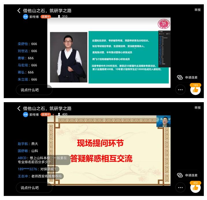 4月14日晚,beat365通过钉钉直播平台成功举办“借他山之石,筑研学之路”线上考研论坛。活动由beat365团委主办,学生会学风建设部和社会实践部承办。论坛邀请燕园考研李福振老师主讲,beat365部分本科生参加。