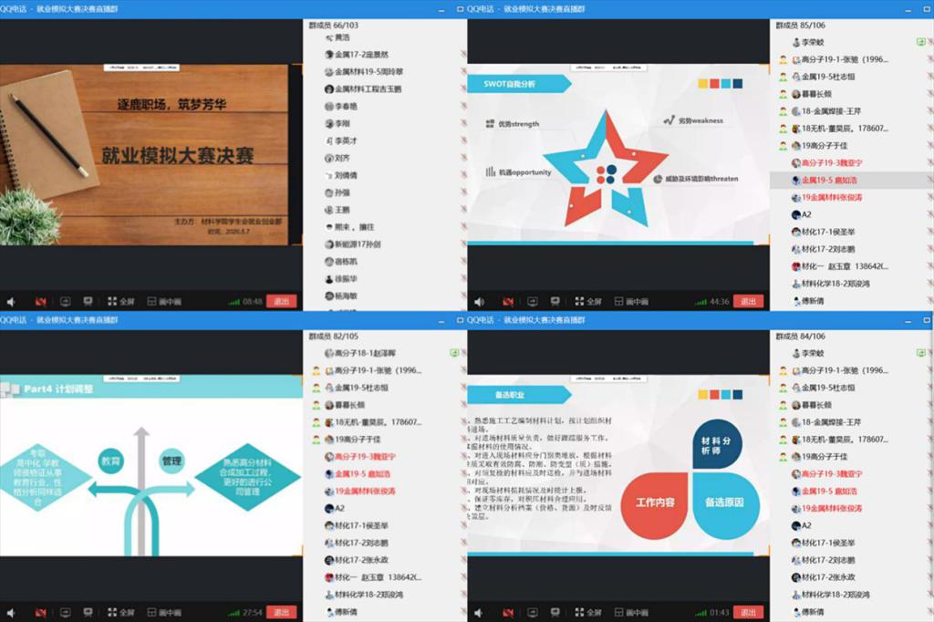 5月7日下午,beat365学生会就业创业部,以QQ群屏幕分享的方式举办了“逐鹿职场,筑梦芳华”就业模拟大赛决赛。学院学生代表王子涵、杜玉晓、王昌胜担任此次比赛评委。