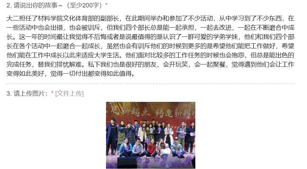 本次活动共有160余名学生通过问卷形式参加,学生通过回忆工作故事,分享参与学生组织、社团、兼职或实习等方面工作的工作经验、做事方法、心得体会,不仅提供了良好的工作经验交流平台,而且分享了工作中的优秀做法。活动在宣传、组织、开展等方面均取得了良好成效,不仅使学生提升了工作能力,也为以后的工作生活、就业创业等打下了良好的基础。(通讯员:宋晓雪)