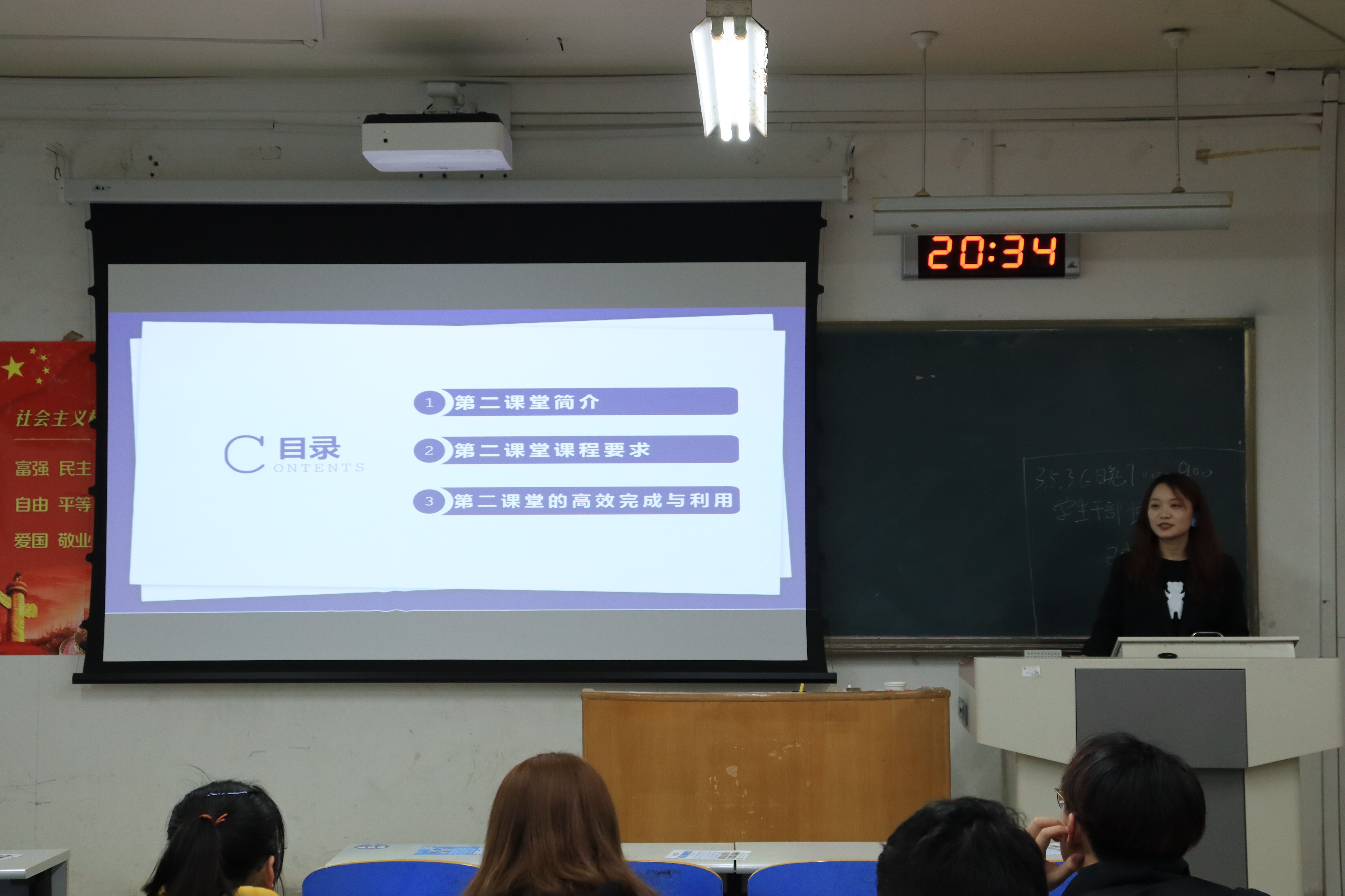 随后,崔玉波在讲话中分享了班级管理和学风建设的经验,从班委、个人、班级几个方面指出班风建设的重要性,激发了低年级学生干部的积极性。朱月明就全民共享的班团建设发表讲话,进行班级故事分享,鼓励学生干部打好群众基础,主动联系老师。最后,孙思雨讲解了有关第二课堂的有效利用和完成的内容。就自己的亲身经历来分享经验,教给大家正确看待第二课堂的成绩单,积极主动地去参加活动。