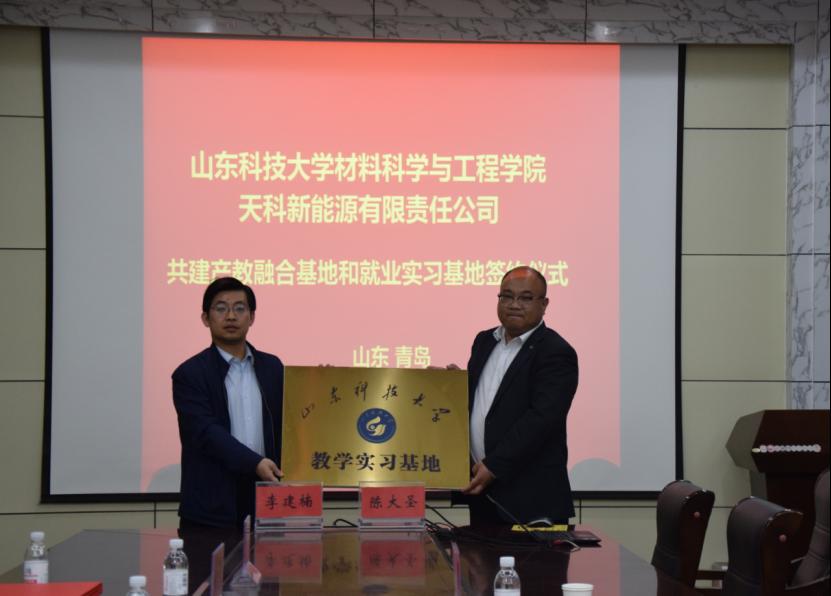 4月16日下午,beat365与天科新能源有限责任公司在J2-434会议室举行产教融合基地和就业实习基地签约仪式。学院党委副书记兼副院长李建楠与天科新能源有限责任公司总经理陈大圣在共建科技研发、教学实习和就业基地协议书上签字,并为基地揭牌。签约仪式由李建楠主持。