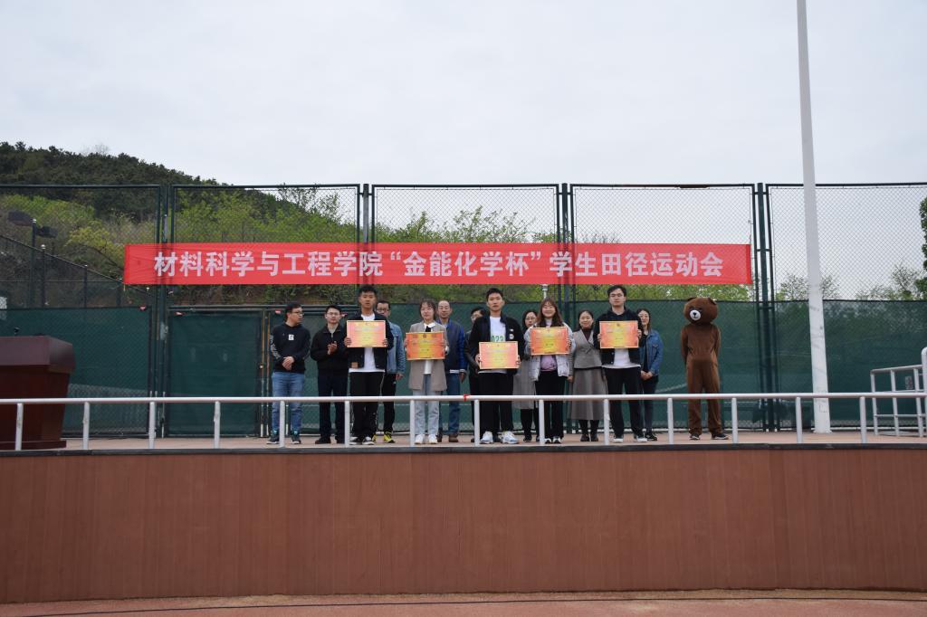 经过激烈的角逐,高分子2019级4班勇夺桂冠,高分子2019级3班和材化2020级1班分别获得亚军和季军。金属2019级1班、金属2020级2班以及材化2020级1班获得精神文明奖。运动会闭幕式上,学院党委副书记兼副院长李建楠致闭幕词,并对获奖班级和个人进行了颁奖。