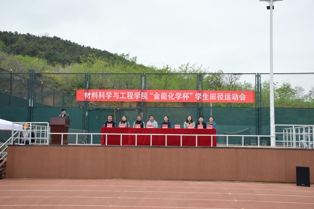 喜迎七十华诞,共创运动风采。4月的科大,草长莺飞,生机勃发。beat365亚洲版官方网站于4月24日下午在学校C区高地体育场成功举办了“金能化学杯”学生田径运动会。beat365党委书记申兆亮,党委副书记兼副院长李建楠,金能化学(青岛)有限公司人力资源部经理陈红,总裁判长体育学院张效江,学院团委全体辅导员出席了开幕式。开幕式由李建楠主持。