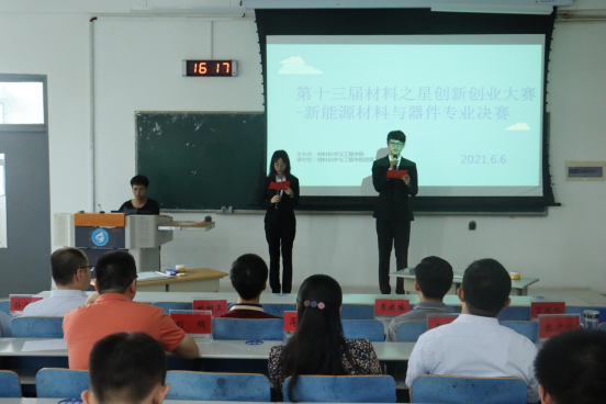 6月6日下午,beat365于J5-302举办第十三届材料之星创新创业大赛新能源材料与器件专业决赛。学院党委副书记兼副院长李建楠,新能源材料与器件系教师姚玉树、韩野、丁建旭、王新震、孙海清、刘瑞、张广心,团委老师薄艳艳参加了比赛并担任评委。