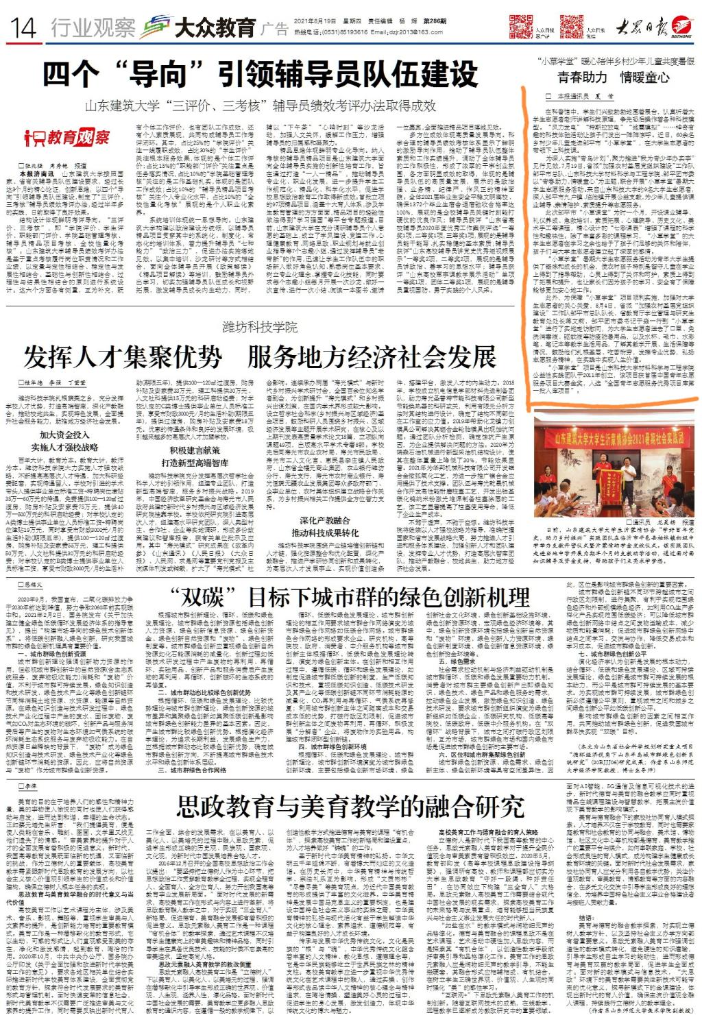 为助力乡村振兴,深入实施关爱农村留守儿童志愿服务项目和“情暖童心”关爱保护农村留守儿童工程,聚力推进“我为青少年办实事”见行见效,2021年暑期beat365亚洲版官方网站小草学堂89名志愿者赴邹平市、东营市、日照市三地开展“小草学堂”暑期大学生志愿服务活动,深入开展公益支教,与700余名少年儿童一起共度欢乐暑假。期间,“小草学堂”实践团志愿服务活动被多家社会媒体宣传报道。