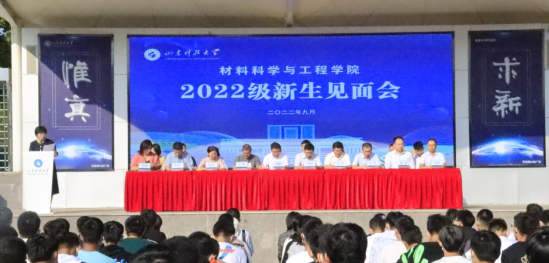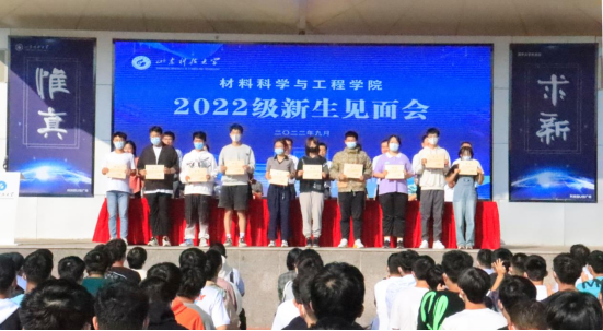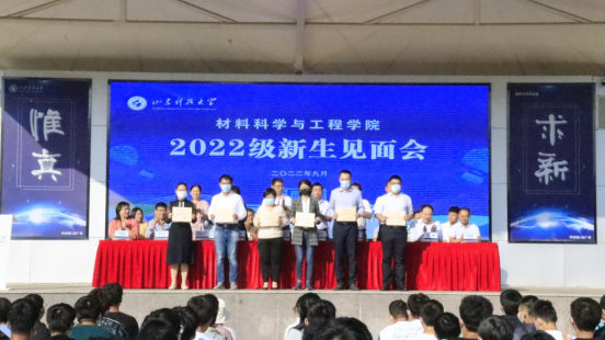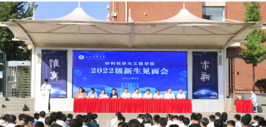校友代表青岛理工大学崔宁教授发言,他就新生入学后如何规划大学生活提出了宝贵的建议。他希望2022级新生要树立勤奋踏实的学习态度,严格要求自己,打牢学习基础;要有真成谦和的做人态度,心胸宽广、主动关怀他人;要积极参与院校班级服务工作,培养业余爱好和高雅的兴趣,不断锻炼自身能力。2022级新生代表张路明同学发言,他表达了对材料专业的喜爱,以及立志为国家新材料研发做出贡献的决心。